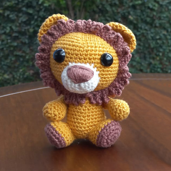 Leão de Amigurumi feito à mão.